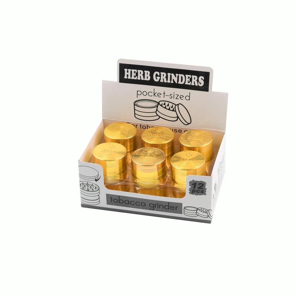 Deze gouden herb grinder is een 4-delige metalen grinder met een strakke, goudkleurige afwerking. Het metalen oppervlak geeft de grinder een nette, opvallende uitstraling zonder overdreven te zijn.